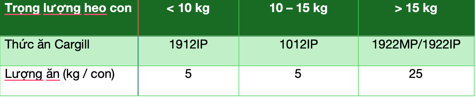 Chương trình dinh dưỡng tối ưu khuyến nghị cho heo con: